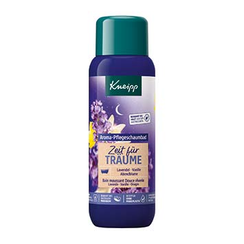 Der perfekte Abschluss nach einem langen Tag: Das Kneipp Aroma-Pflegeschaumbad (400 ml 5.954) Zeit für Träume begleitet sanft den Übergang in den Schlaf.