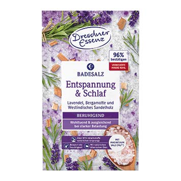 Entspannend und pflegend: Mit dem Badesalz wird aus dem Bad ein Moment bewusster Entspannung. Lavendel-, Bergamotte und Sandelholz wirken beruhigend. Dresdner Essenz Entspannung & Schlaf, 60 g 1.75
