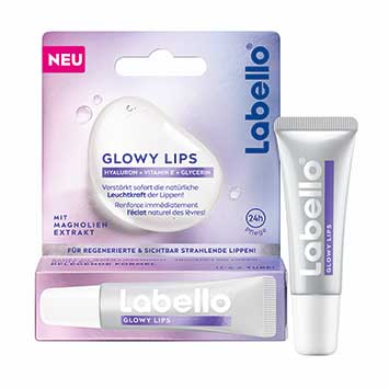 Le soin Glow Lips de Labello (10 ml 6.503) nourrit les lèvres sèches et leur apporte un nouvel éclat. Sa formule innovante à base d’acide hyaluronique, de vitamine E et de glycérine hydrate les lèvres pendant 24 heures.