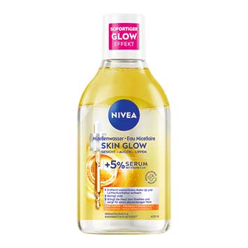 Allie nettoyage doux et soin intense: l‘eau micellaire Skin Glow de Nivea (400 ml 7.953) élimine aussi le maquillage waterproof et les résidus de crème solaire. Avec 5% de sérum à base de vitamine C, de vitamine E et d‘acides aminés pour un teint frais et uniforme.