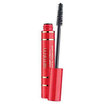 Un fond de teint à l’aspect mat offre un teint apaisé et met les couleurs en valeur. Un soupçon de bronzer le long des pommettes structure les contours du visage. Le maquillage des yeux reste volontairement sobre: un fard brun souligne la paupière tandis que les sourcils sont redessinés avec précision à l’aide d’un crayon. Ici, les lèvres sont la vedette: un crayon rouge définit les contours, un rouge à lèvres rouge intense vient parfaire le look – classique, puissant, assumé.